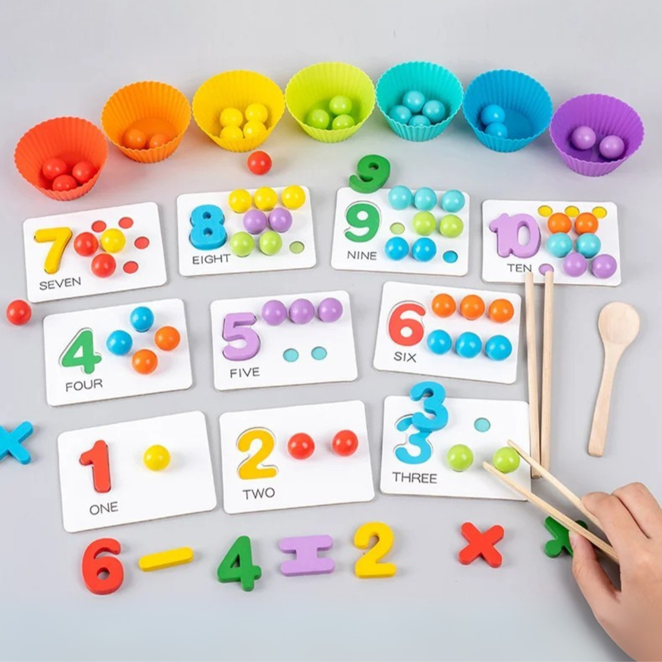 Kids count, match, and sort with colourful balls that make early maths fun while boosting focus and motor skills.